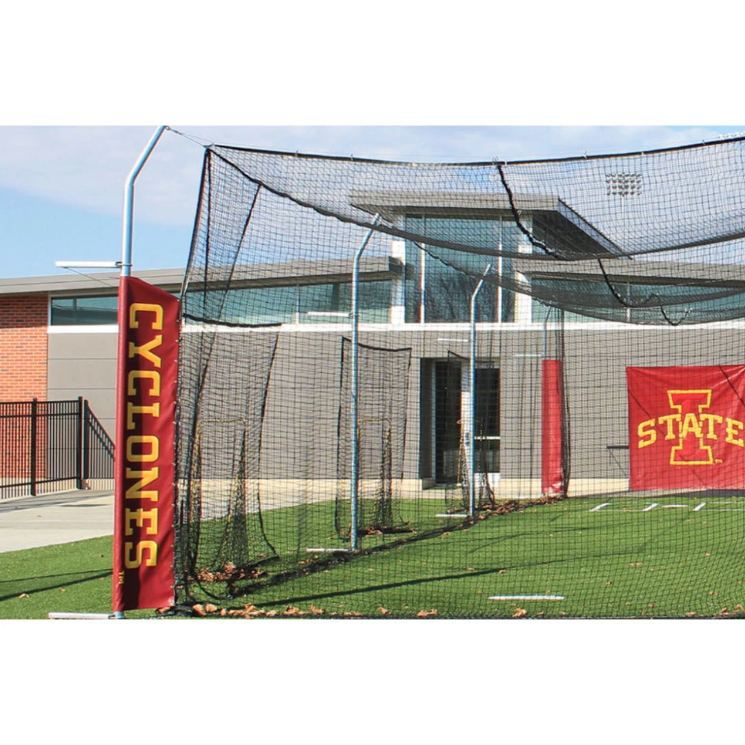 These additional structural supports are designed to hold the net in place and put slight tension on the side and end panels so the net can better resist the wind. They fit all our single or multiple cage modular installations. Add your team name or logo to the team color tensioning cuffs to personalize in a colorful, team branding way. Available for single (4 included) or double (6 included) batting cages.