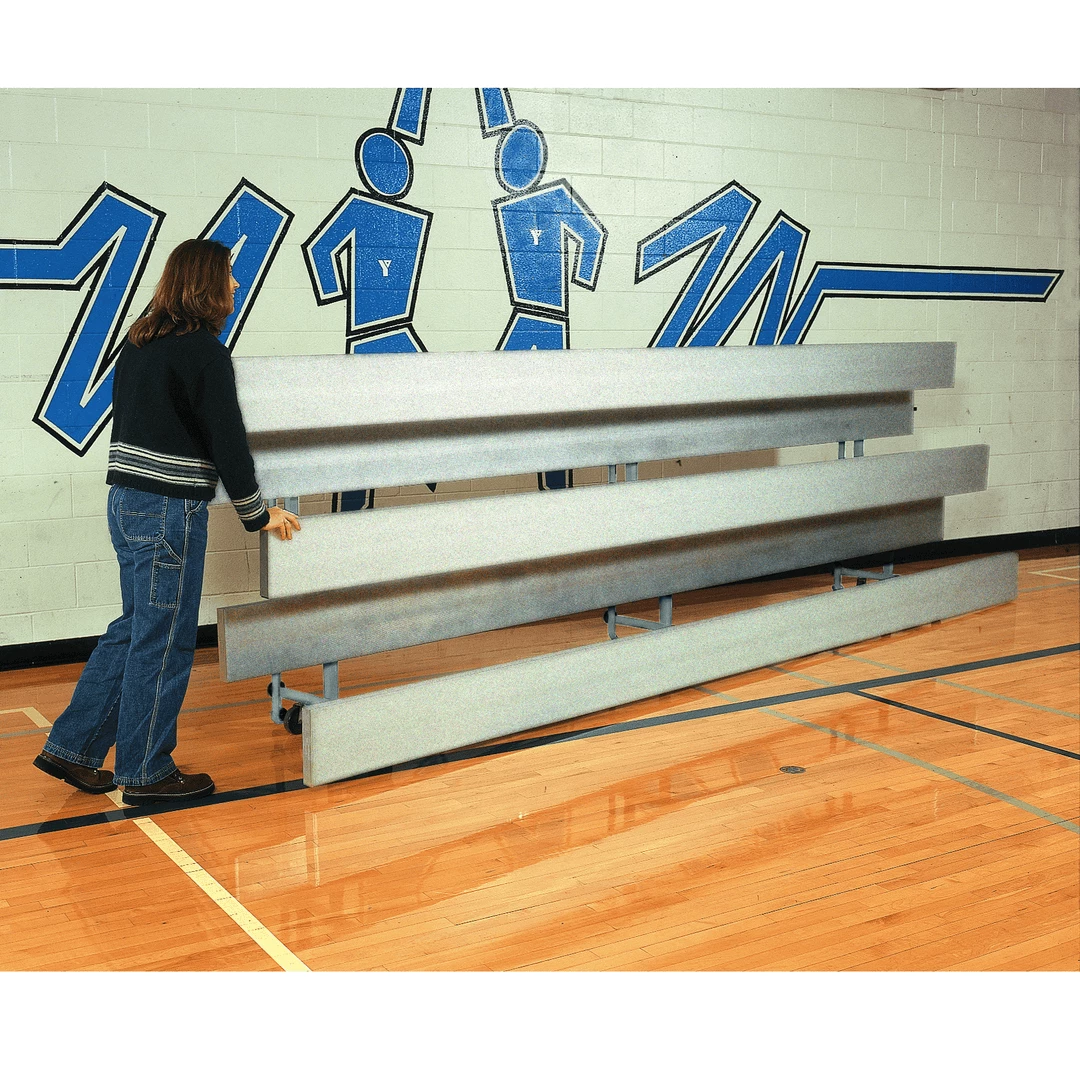 - Easy Store bleachers rest on non-marking rubber feet