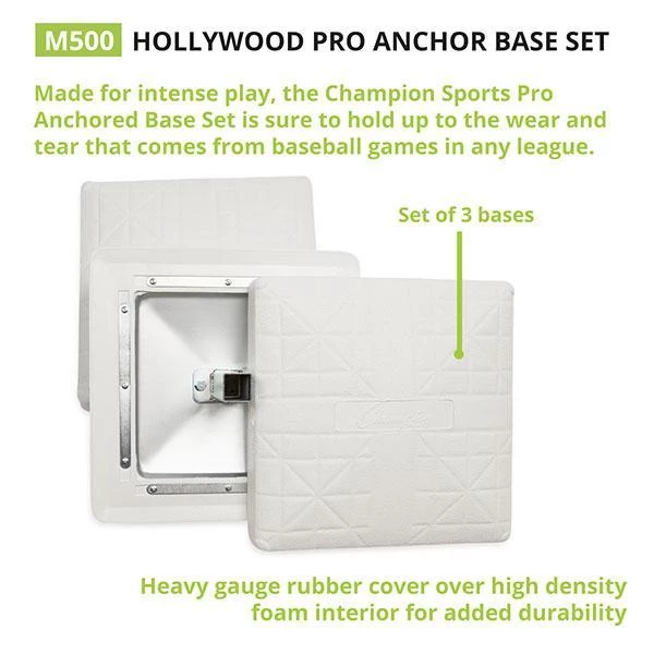 Made for intense play on the baseball diamond, the Champion Sports Pro Anchored Base Set is sure to hold up to the wear and tear that comes from baseball games in any league. With a heavy rubber cover and rust-proof bolted stanchion pan, this base set will stand up to rain, mud, and snow, as well as players’ cleats. High-density foam is soft enough to avoid injury for players sliding into bases. The hinged ground anchors make it easy to remove and transport.