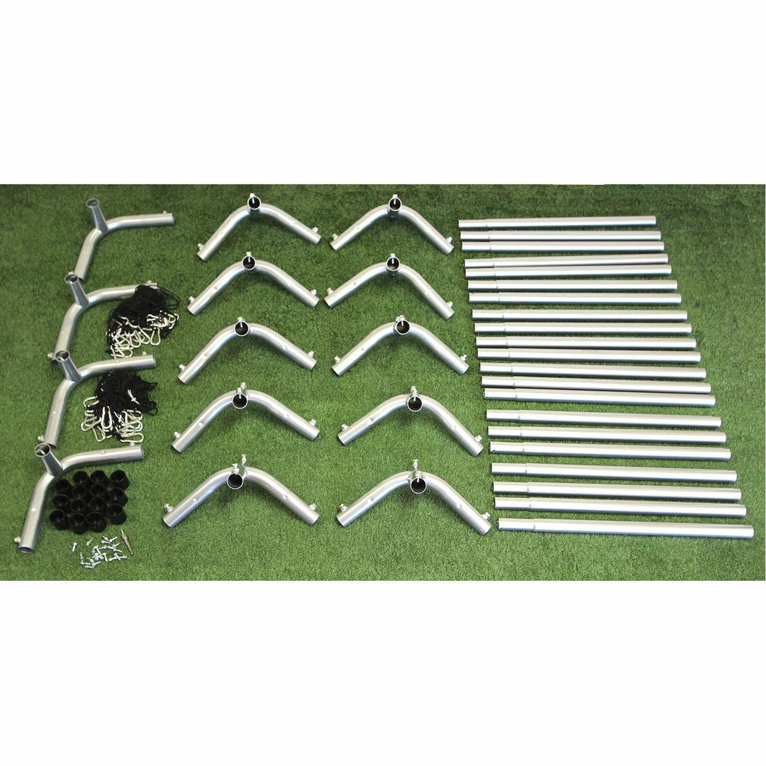 Our Cimarron 1 1/2″ frame corner kit is the most economic way to hang a batting cage net in any open space. Save money on shipping by purchasing the poles at your local hardware store. Kit comes with everything you need to assemble except the poles.