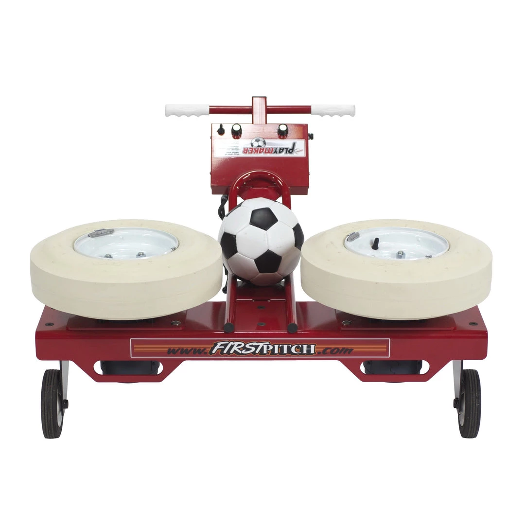 The First Pitch Playmaker Soccer Machine has the power, flexibility, and durability to help your players reach their potential. This soccer machine is a great addition to your practice routine, allowing for a variety of drills and simulations. First Pitch has used the very best materials and craftsmanship to make this soccer passing machine & soccer kicking machine.