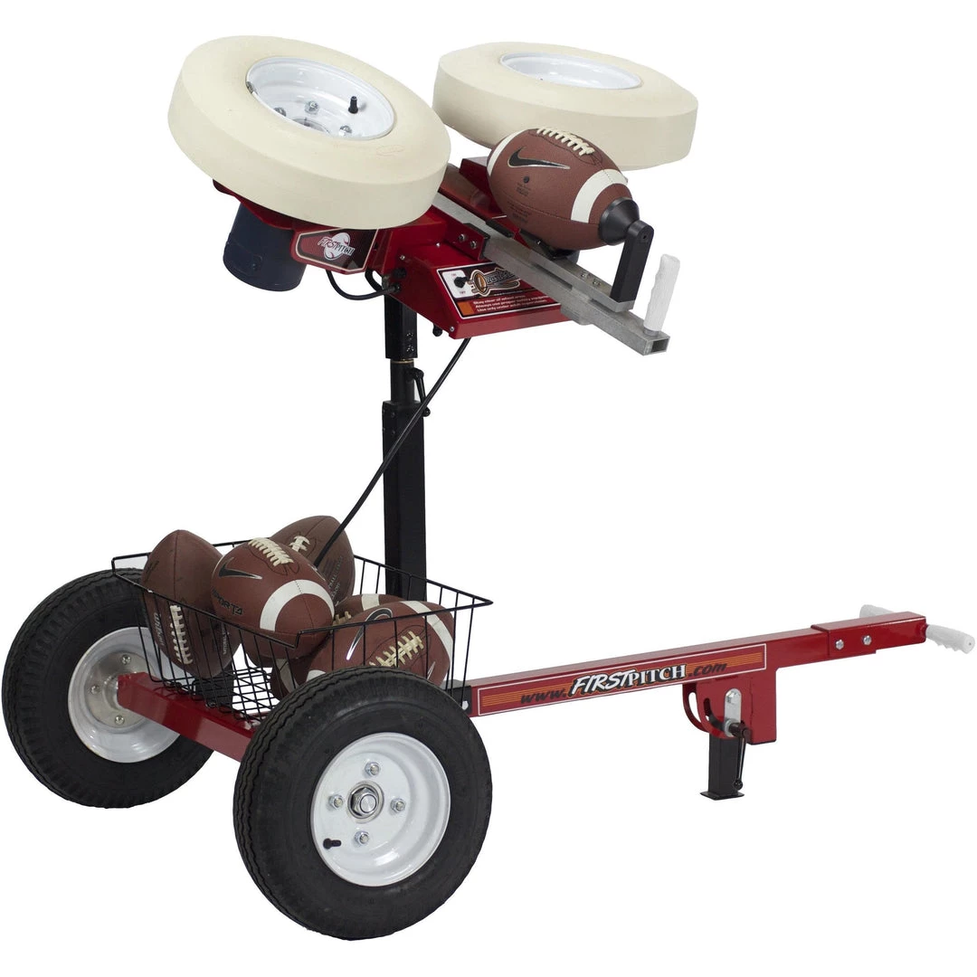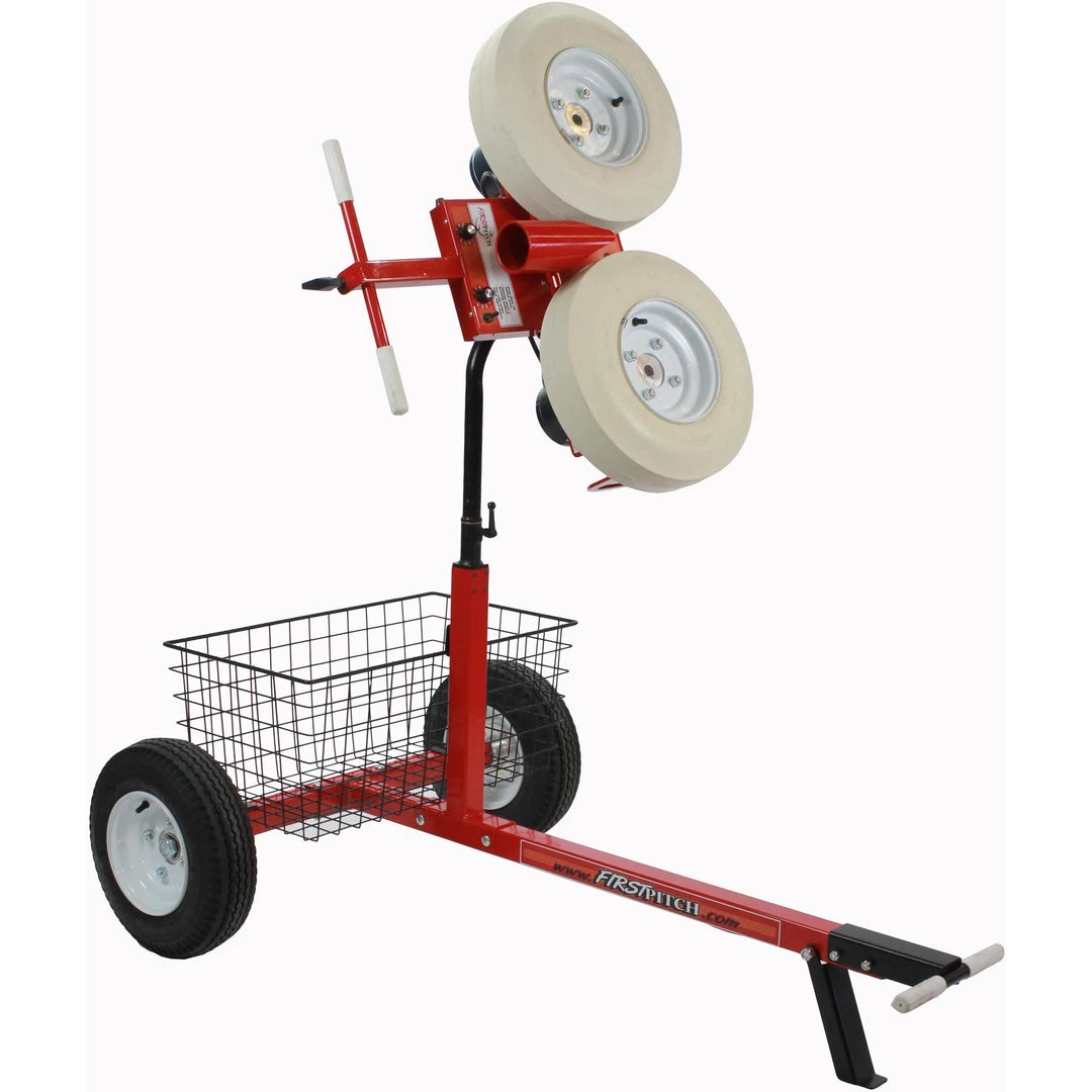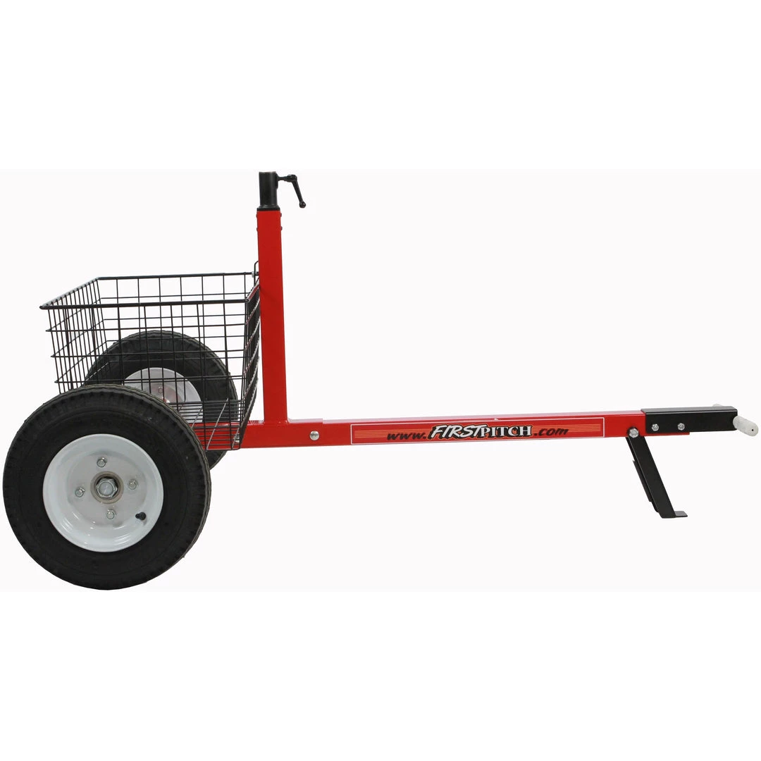 The Transporter Pro features large wheels for any terrain and can be pulled by hand, or hooked up to gulf cart, lawn tractor, or ATV. The large basket allows you to carry footballs, baseballs, or other equipment. Trailer hitch ball size is 1 7/8″.