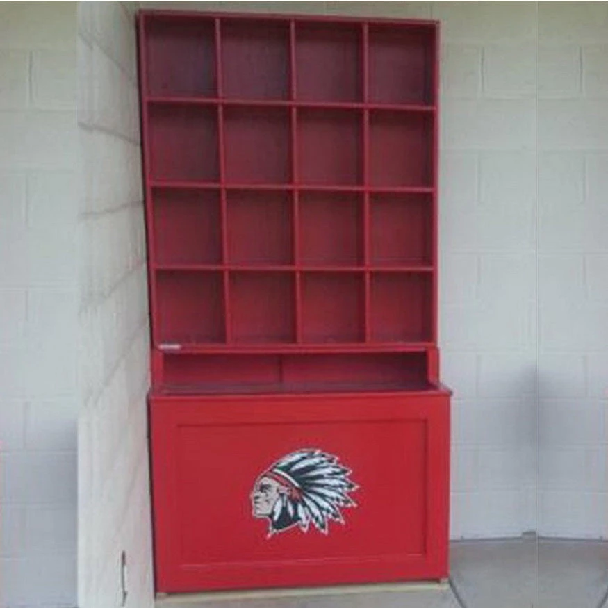 - 16 helmet cubbies and bat rack holds 40+ bats
