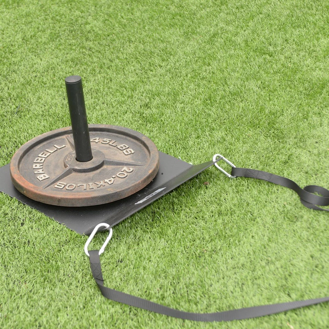Unlike most drag sleds, the TAP Flat Bottom Speed Sled can be used almost anywhere making it an ideal for speed training and conditioning. Unlike traditional drag sleds with rails, the flat bottom slides smoothly on most surfaces, such as track, turf and grass and can be used on pavement. Includes harness and drag strap. Plate weights sold separately.