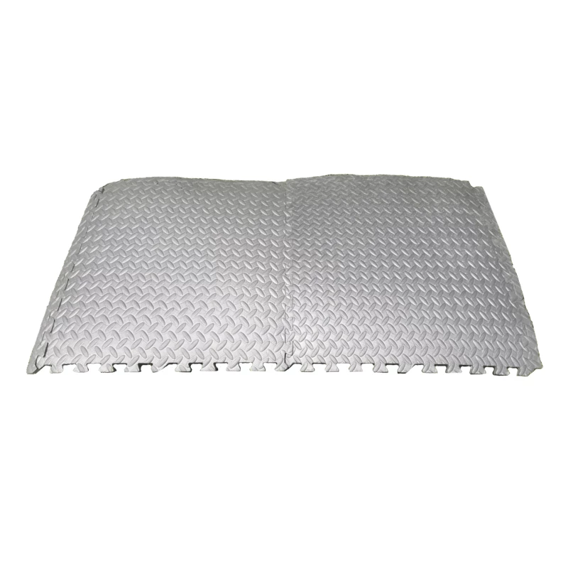 The Interlocking EVA Workout Flooring tiles help reduce fatigue and protect floors during fitness exercises. Its foam rubber design reduces noise and provides shock-absorbing comfort. The lightweight interlocking puzzle edge design is easily assembled and can be quickly disassembled for convenient storage.