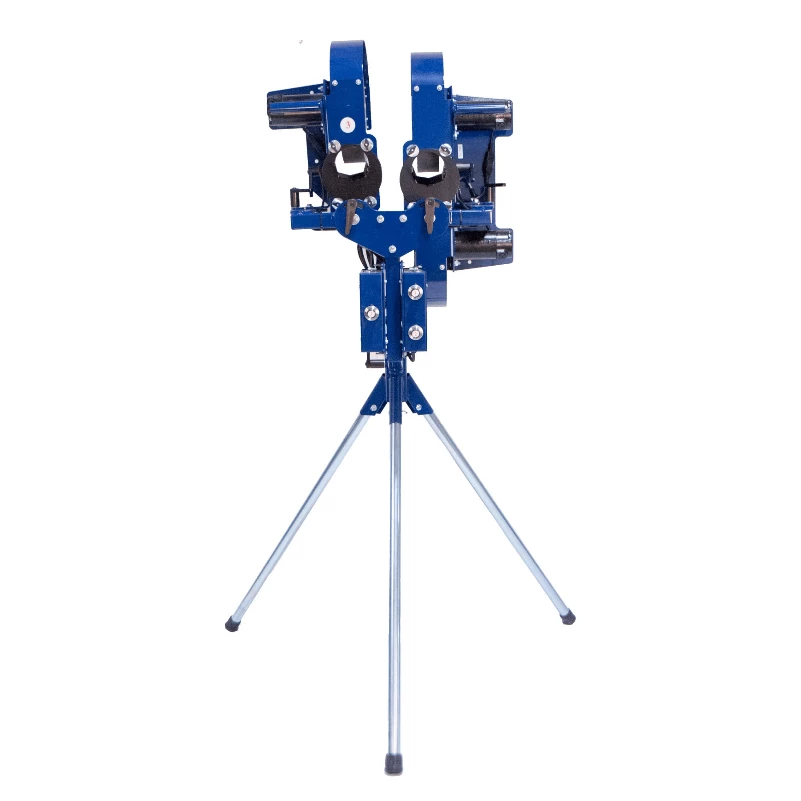 On the 2pitch3 Baseball Pitching Machine, both the Fastball head and the Curveball head can be tilted 35-degrees left or right to simulate right-handed or left-handed pitching.