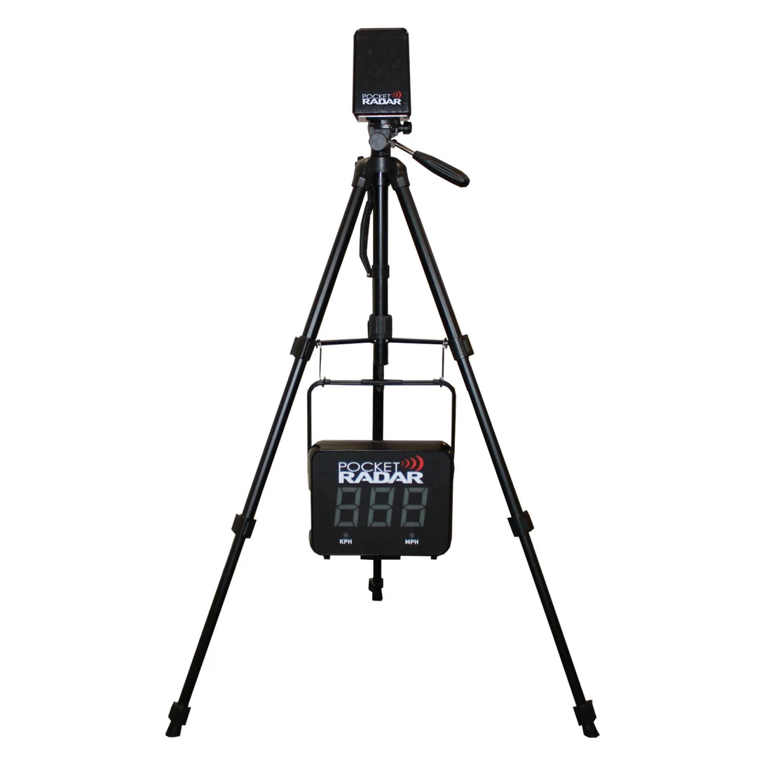 - Tripod head tilts up to hold the radar vertical