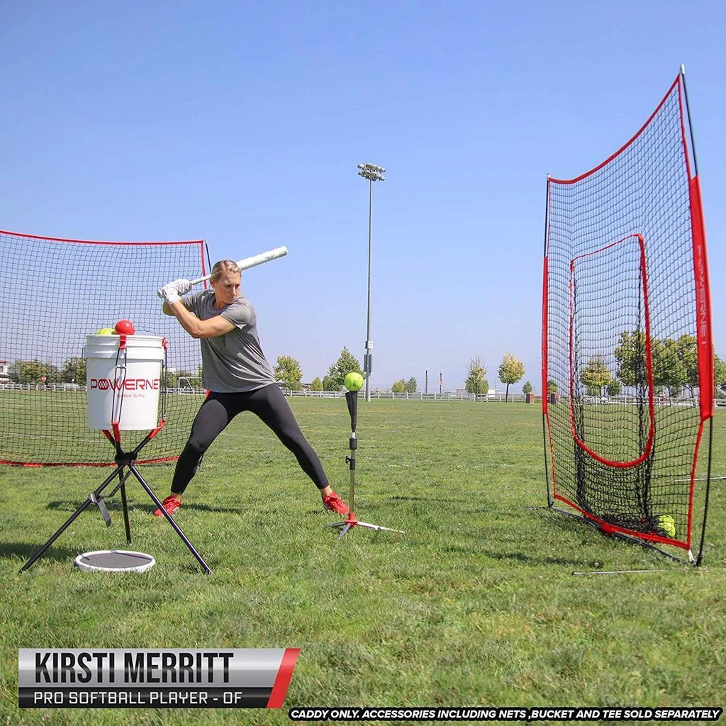 PowerNet Baseball and Softball Ball Bucket Caddy. This ultra portable bucket stand lifts the bucket to waist height. Save your back, no more bending over to pull balls out of the bottom of the bucket. Perfect for any training session or practice. Use multiple so you can have one at each drill station. Versital design can accommodate any 2 (two) to 6 (six) gallon size bucket. The bungees hold the bucket firmly in place. The rugged Tripod design is extremely stable and has a small footprint so it doesn’t take up too much space on the field. Folds very small for a very compact size while not in use or transporting. Instant setup, just open, attache the bucket and go!