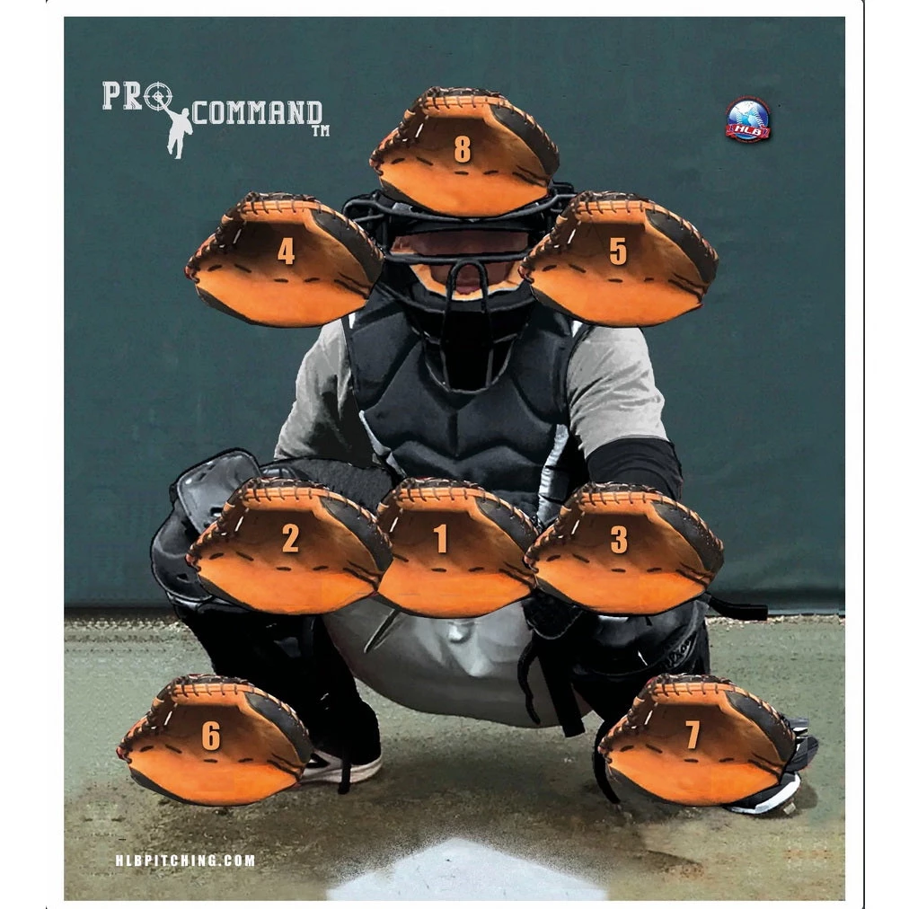 The Pro Command Target’s uniqueness is an actual size catcher with perfectly located targets that every pitcher needs to hit in order to have optimal success. The catcher’s mitts were designed to give pitchers the glove details that will allow them to see a small lace or light coming through the web to aim small and miss small. The objective is for pitchers to miss within the intended glove, not missing it entirely.